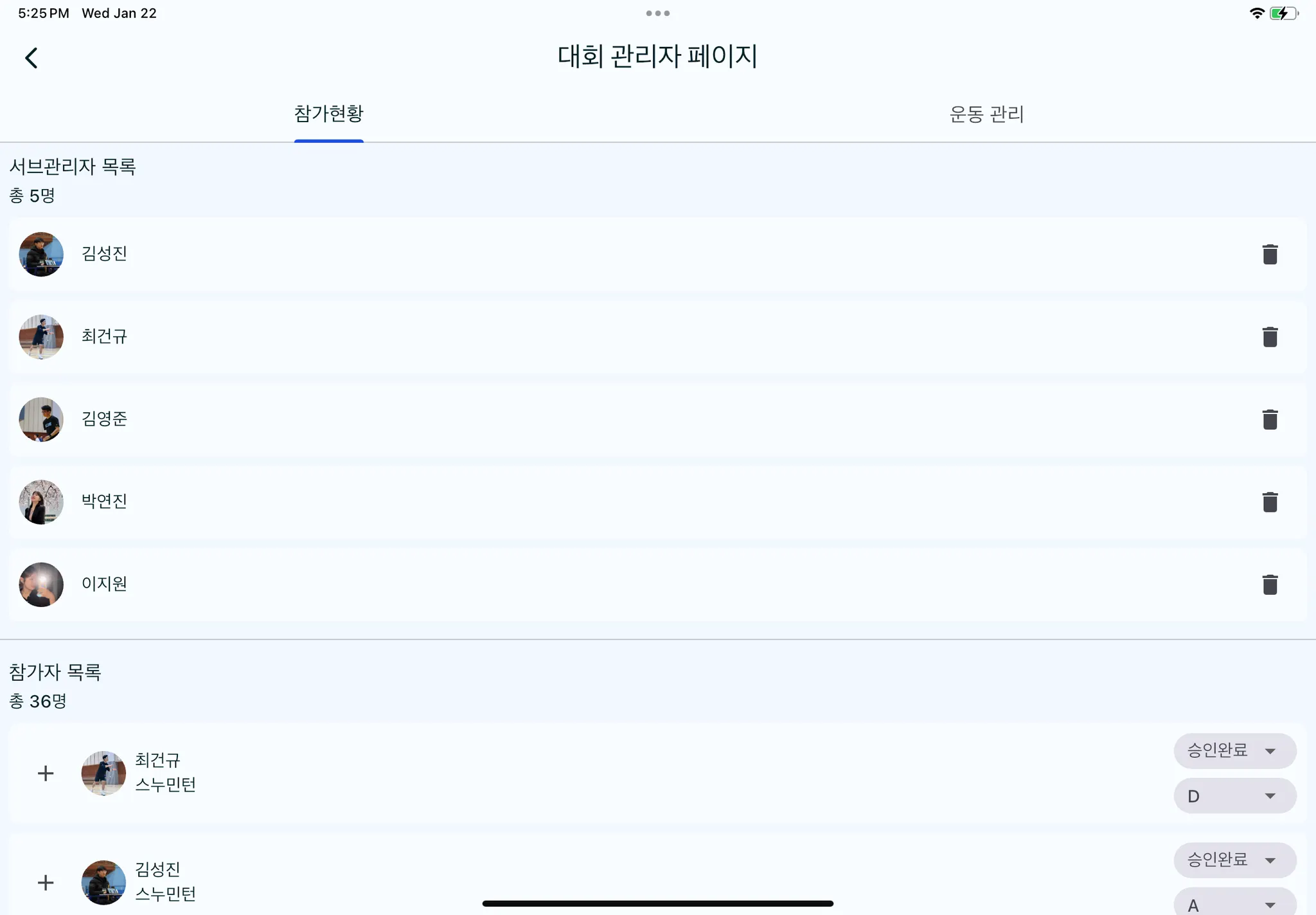 운동 관리자는 전체 참가자의 랭킹을 조회할 수 있습니다