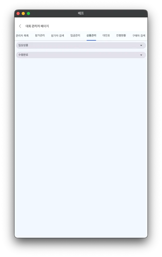 1. 대회 관리자 페이지 > 상품관리