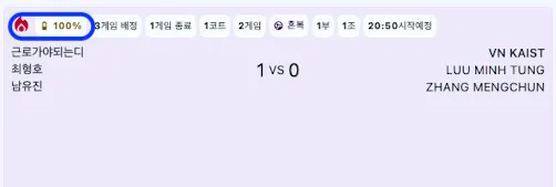 대회 관리자 페이지 > 진행현황 > 파란 동그라미 부분에서 배터리 용량 체크